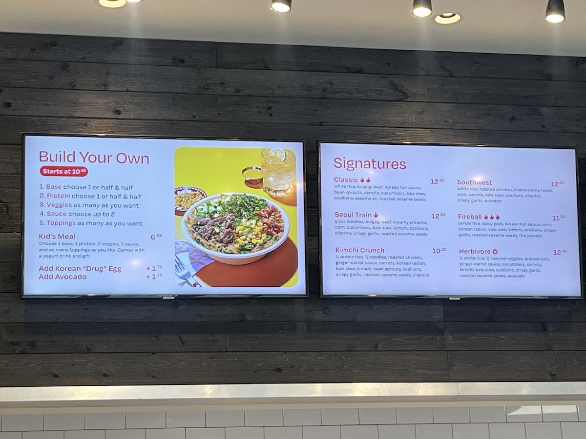 Craft your personalized Korean bowl with our healthy and delicious options. Start with a base: white rice, purple rice, glass noodles, roasted veggies, or fresh salad greens. Add your choice of protein (available in full or half portions): bulgogi beef, roasted chicken, spicy pork, marinated tofu, or crispy chicken. Finish with fresh veggie toppings and our house-made sauces.